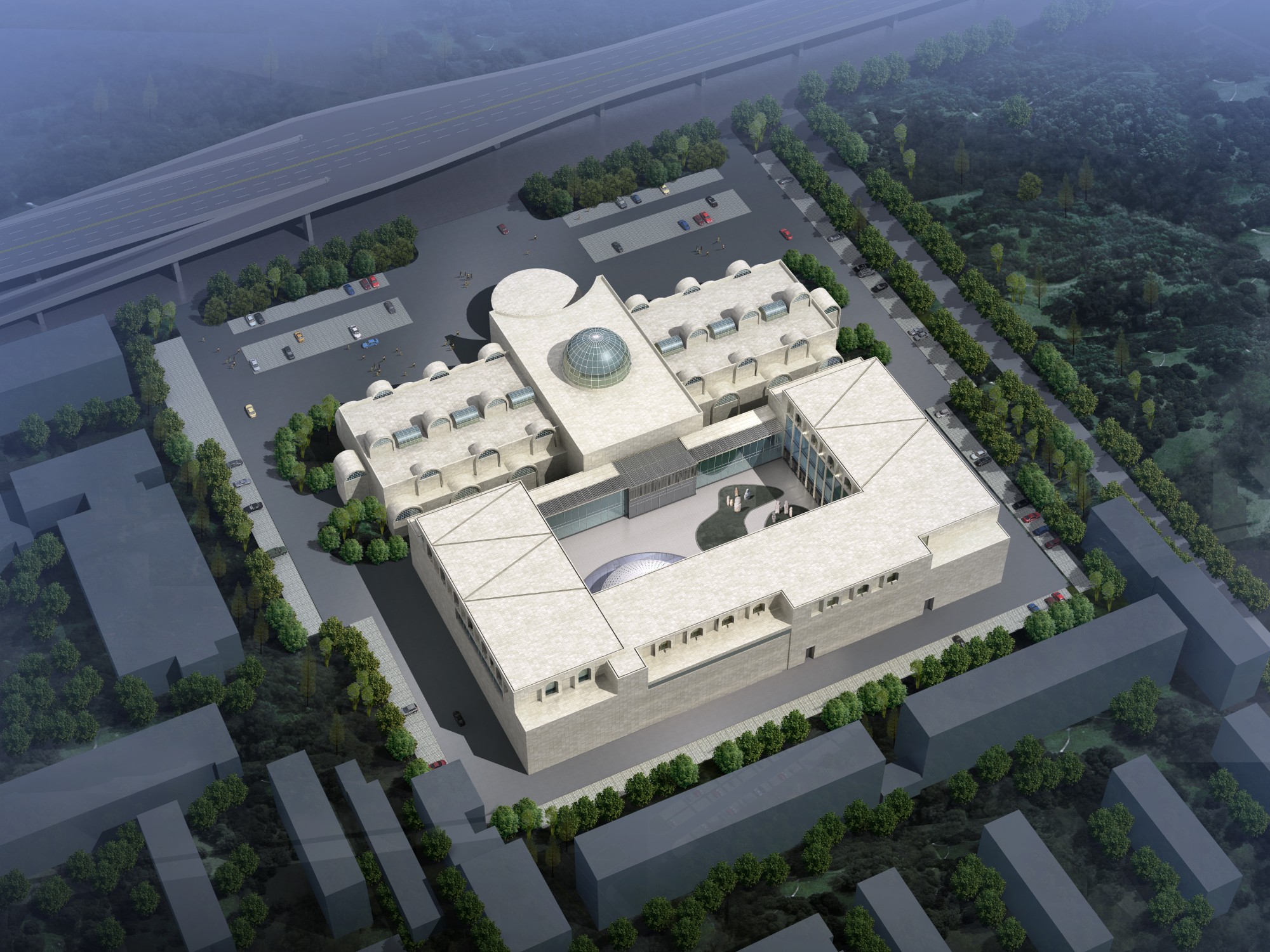 • 项目描述: 新馆建筑面积17288平方米,地下一层、地上二层,主体高18.5米,玻璃穹顶顶标高29.5米,建筑平面基本呈“一”字型平面对称布局,具有浓郁西域风格和新疆地方特色。